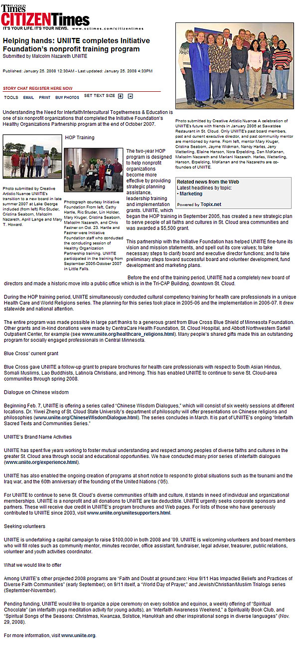 ARTICLE IN CITIZEN TIMES of ST. CLOUD TIMESPublished: January 25. 2008 http://www.sctimes.com/apps/pbcs.dll/article?AID=/20080125/CT01/101280012/1050/C